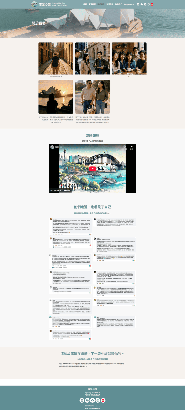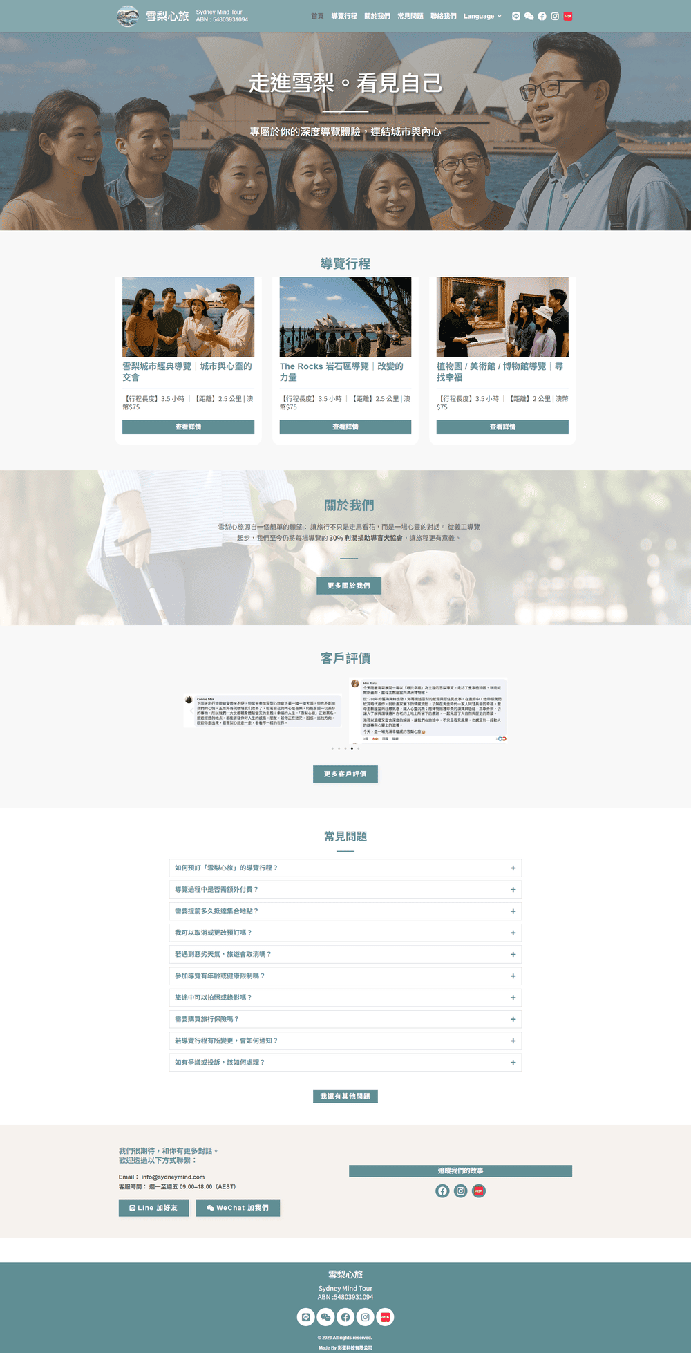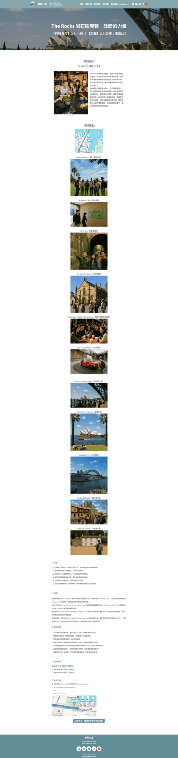 透過深度導覽與城市步行,讓你不只是看見雪梨,更能走進它的內在故事清晰呈現行程特色與路線規劃,讓訪客迅速了解不同導覽選項團隊介紹與導覽理念公開透明,提升品牌溫度與信任感