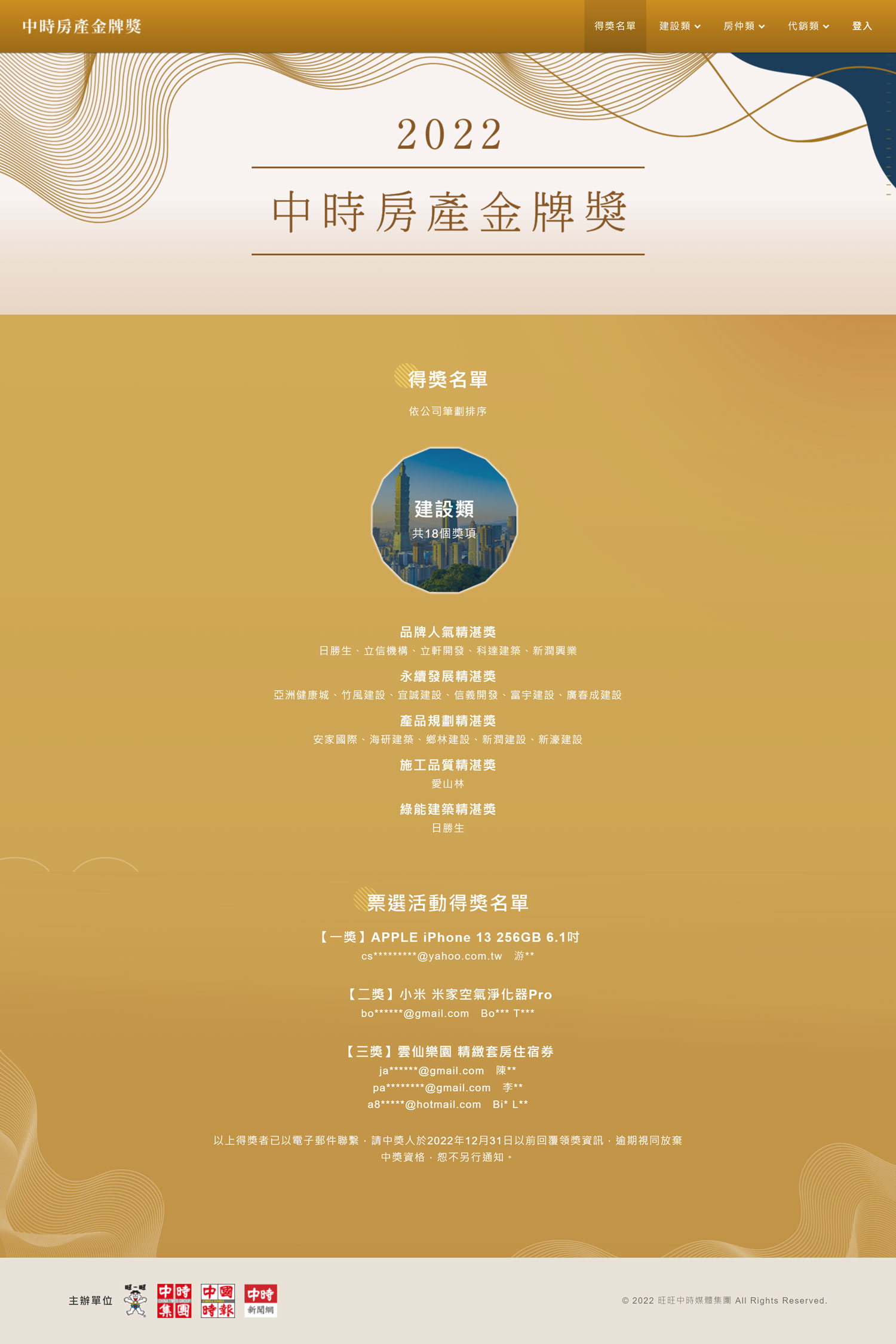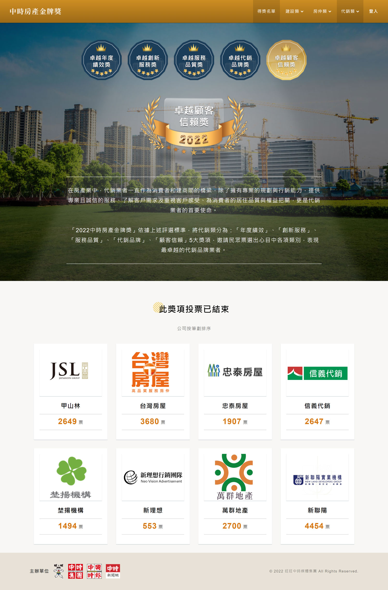 中時房產金牌獎