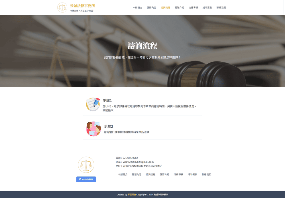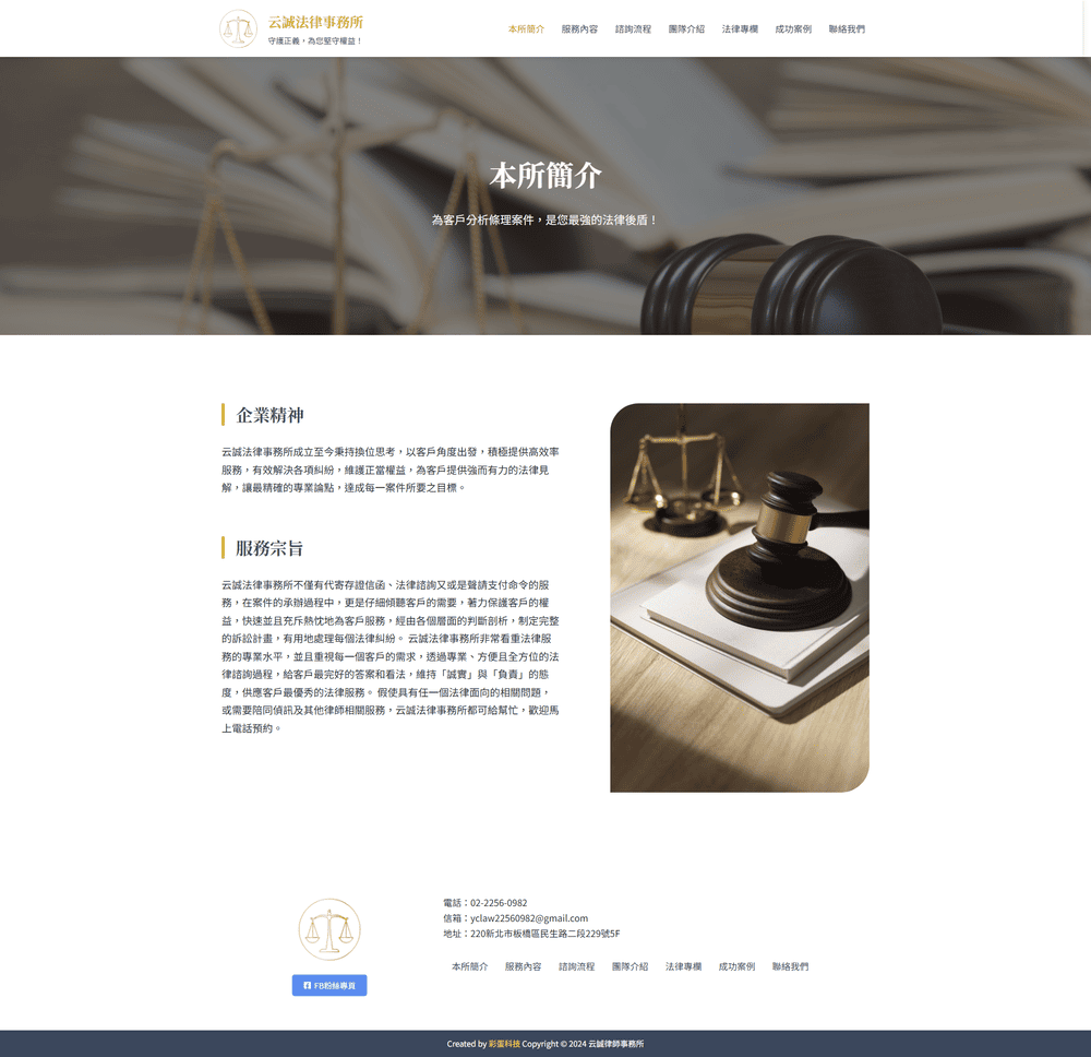 以穩重的視覺語言與明確的版面結構,呈現事務所專業與信任感