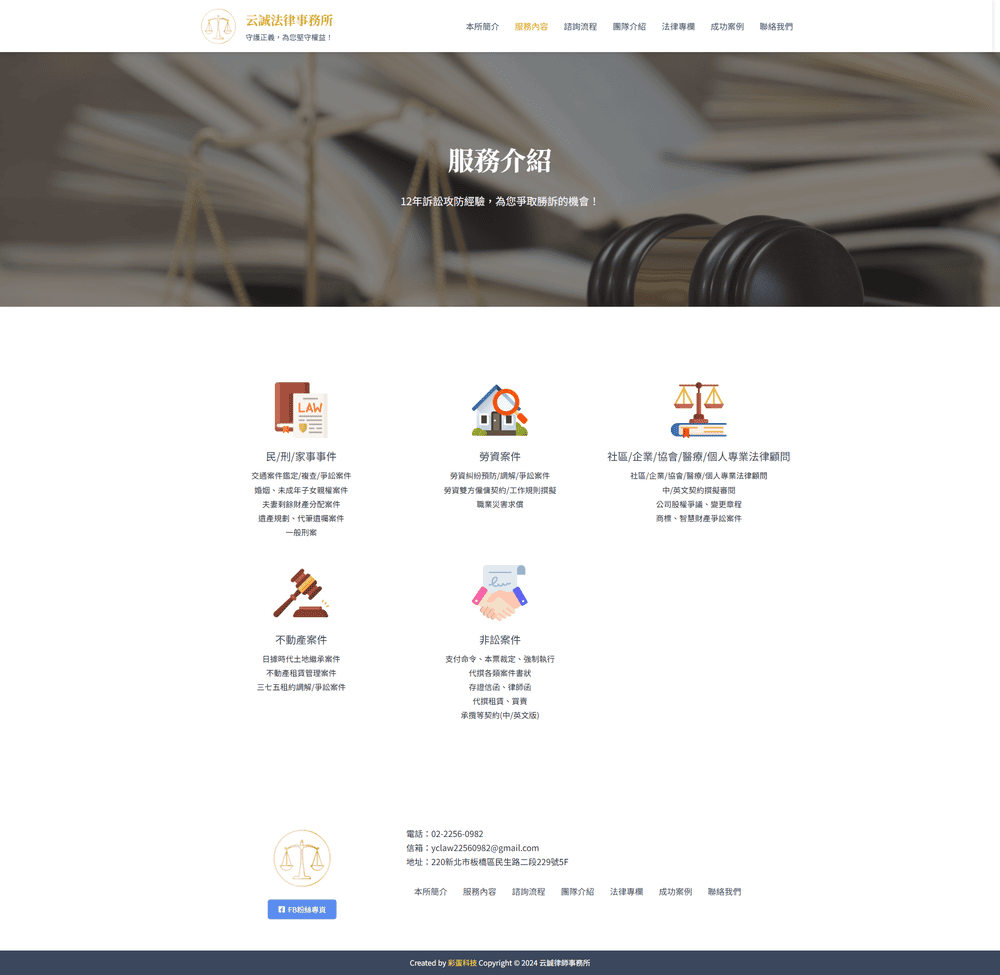服務項目清楚分類,讓訪客快速了解各類案件諮詢方向
