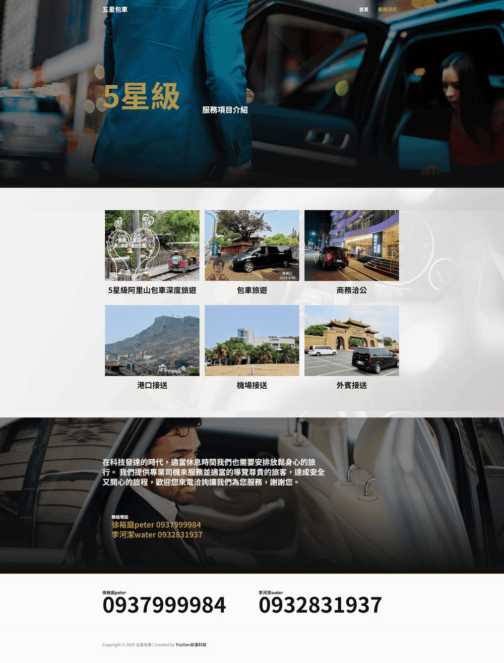 清晰的車款分類與服務項目排版,讓訪客一眼掌握旅遊選項