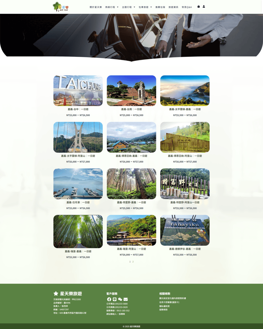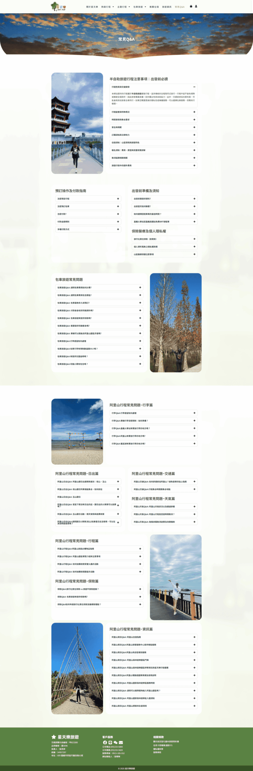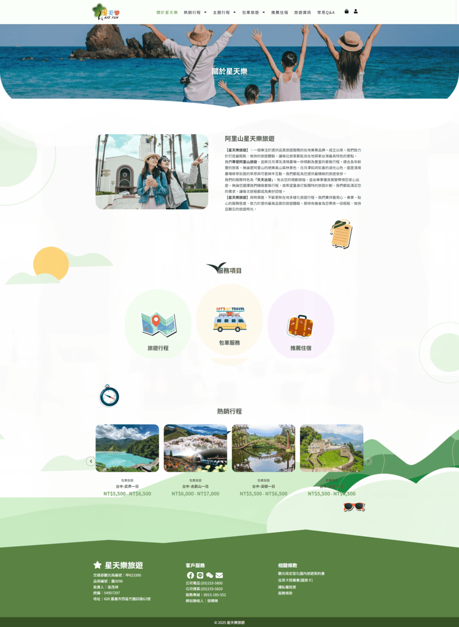 以清新自然的綠色調,營造放鬆旅遊氛圍,喚起「出發探索」的第一印象以模組化行程卡片設計,讓訪客快速比較與挑選喜愛路線結合實景圖片與旅遊主題,呈現專業又親切的品牌形象,讓旅遊體驗從網站就開始