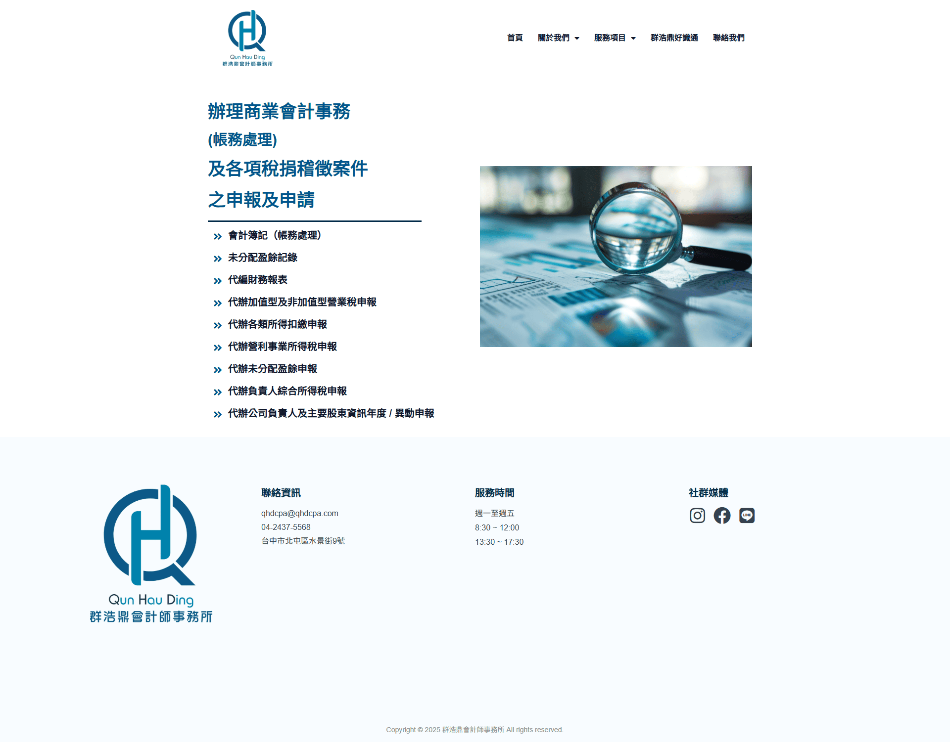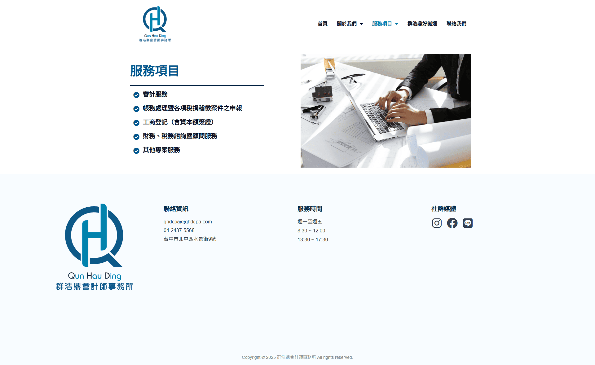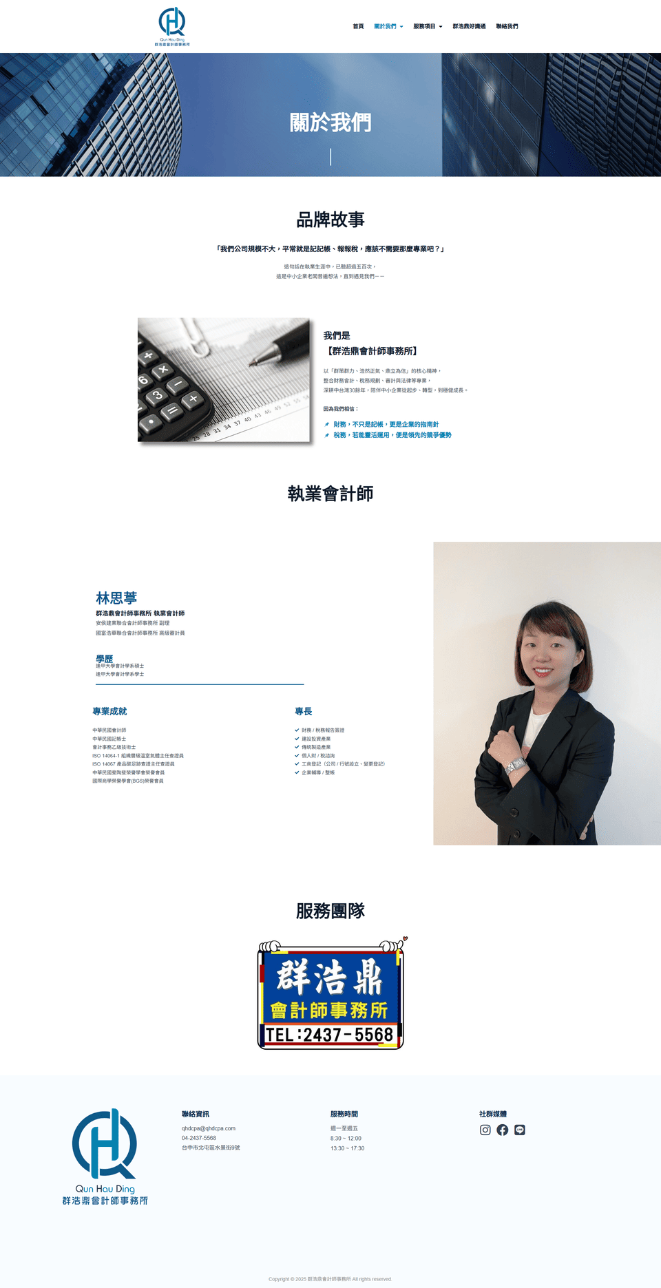 從服務項目到專業簡介,清楚分類與圖示設計,讓訪客快速找到所需資訊以專業形象與事務所成員介紹,建立可靠且值得信賴的第一印象採用簡潔易讀的排版,搭配行動呼籲按鈕,提升使用便利性與互動感